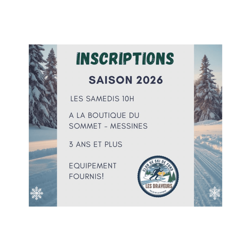 Great news! The Club de ski de fond les Draveurs (Draveurs Cross-Country Ski CLub) is opening registration for the 2026 season. Give your children the chance to discover cross-country skiing in a safe and fun environment.