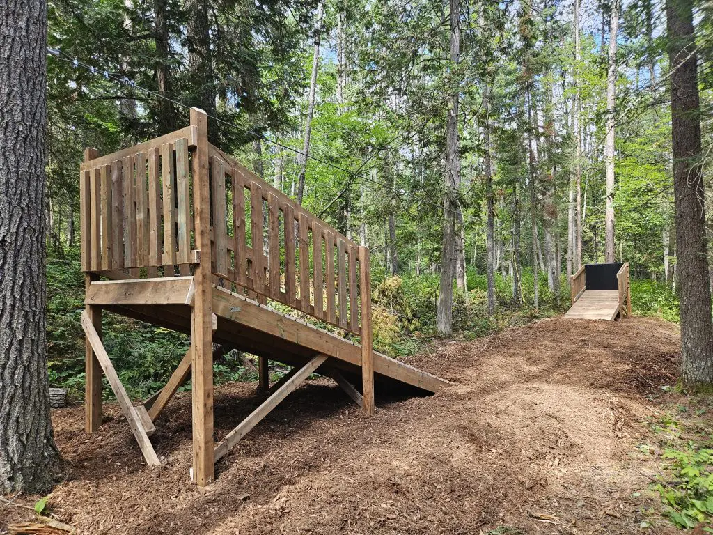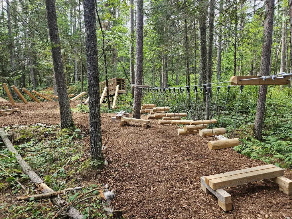 Located in Sainte‑Thérèse‑de‑la‑Gatineau, the hebertism trail, designed for both young and older visitors, features 14 modules, including a low‑altitude zip line. This project, developed by the municipality, aims to promote physical activity in a natural setting. It is a complementary attraction to the trails of the White‑tailed Deer Interpretation Centre, the Logger’s Shelter, as well as the seven hiking trails developed by PERO Outaouais.
