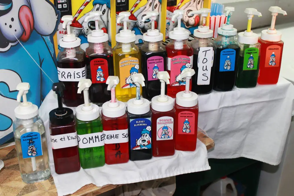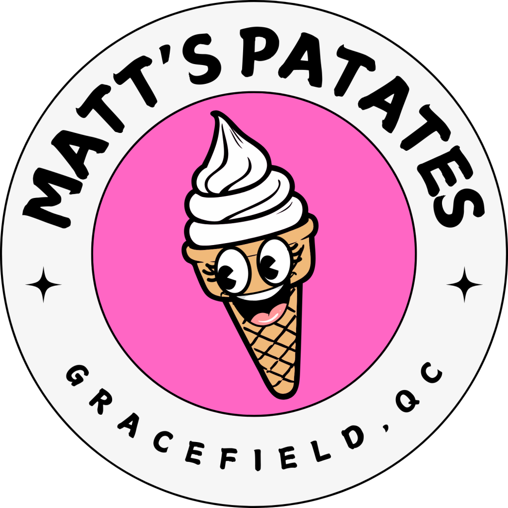 Menu traditionnel de casse-croûte, pizza et crème glacée. Commandes à emporter et tables de pique-nique.