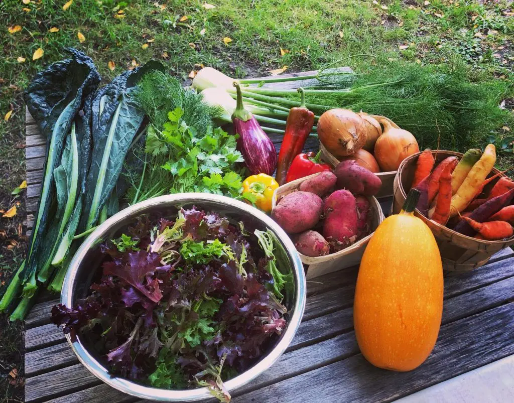 Légumes et fines herbes. Produits certifiés biologiques et cultivés selon les principes d’agriculture régénératrice.