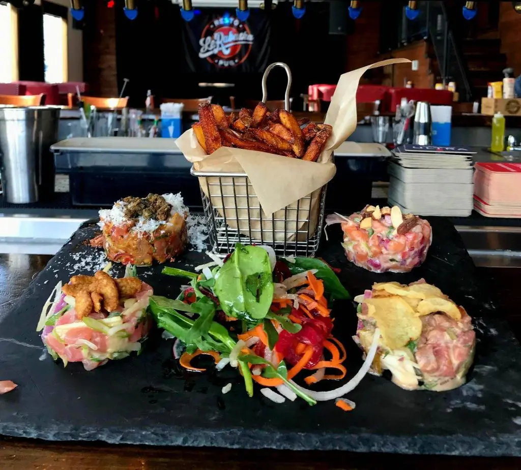 Restaurant avec menu style pub. Dîner et souper. Services aux tables et commandes à emporter.