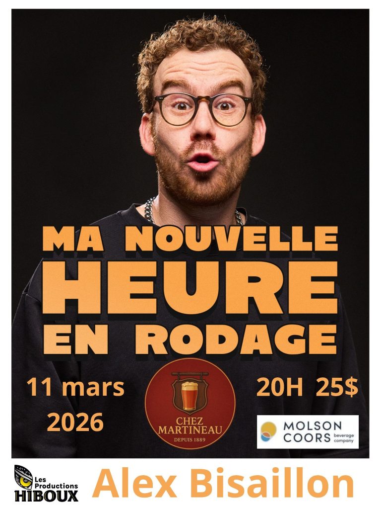 Chez Martineau et Les Productions Hiboux sont heureux de vous présenter Alex Bisaillon – Ma nouvelle heure (en rodage), le 11 mars prochain.