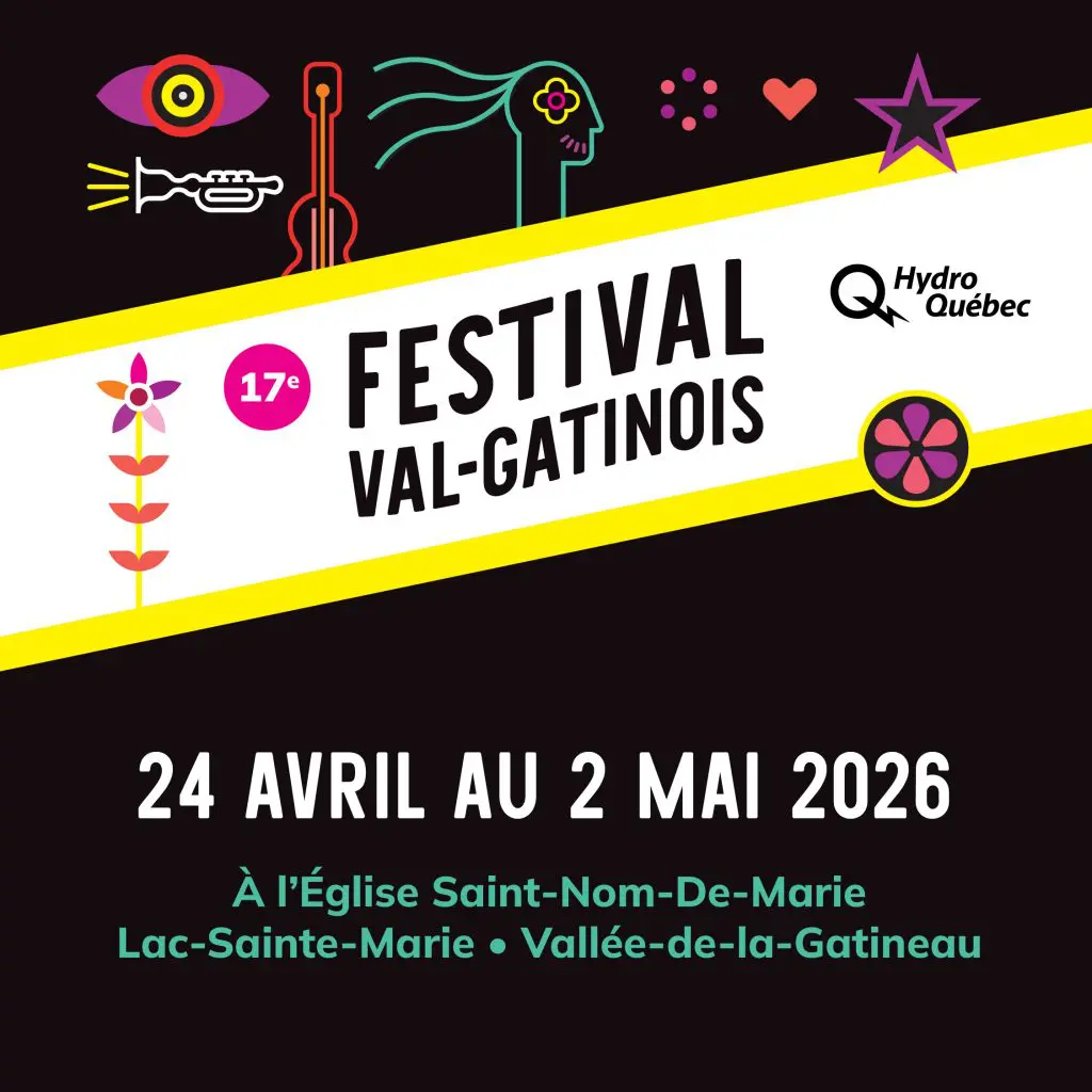 Le Festival Val-Gatinois est heureux d’annoncer la tenue de sa 17e édition, qui aura lieu du 24 avril au 2 mai 2026 à l’Église Saint-Nom-De-Marie, à Lac-Sainte-Marie. Événement culturel majeur de la Vallée-de-la-Gatineau, le Festival promet un véritable voyage musical, réunissant artistes de renom et une programmation riche et diversifiée.