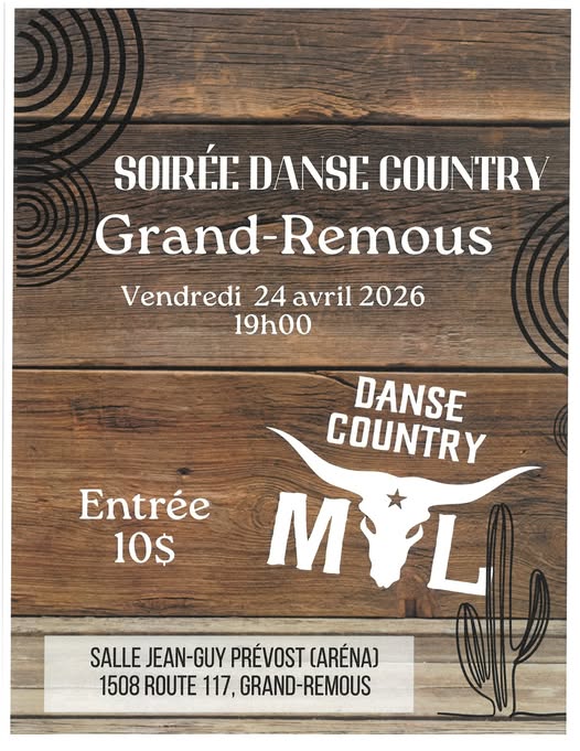 La municipalité de Grand-Remous, en collaboration avec Danse Country ML, invite la population à une soirée de danse country des plus festives, le 24 avril prochain dès 19h, à la salle Jean-Guy Prévost.